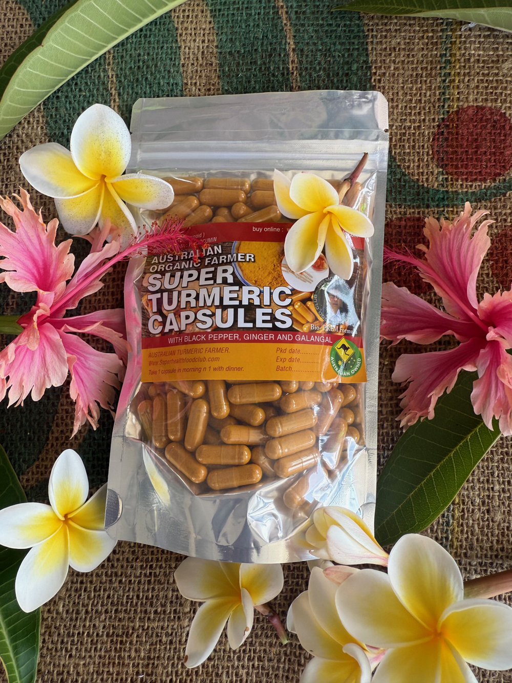 Organically grown turmeric in capsules with black pepper, ginger and galangal.